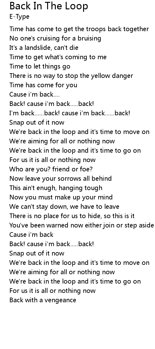 We're back in the loop and it's time to move on |