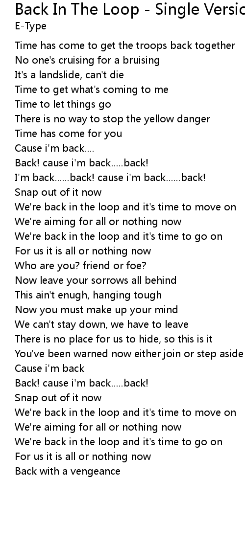 We're back in the loop and it's time to move on |
