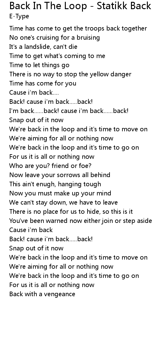 We're back in the loop and it's time to move on |