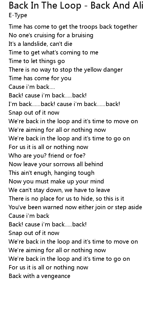 Back In The Loop - Back And Alive Version Lyrics