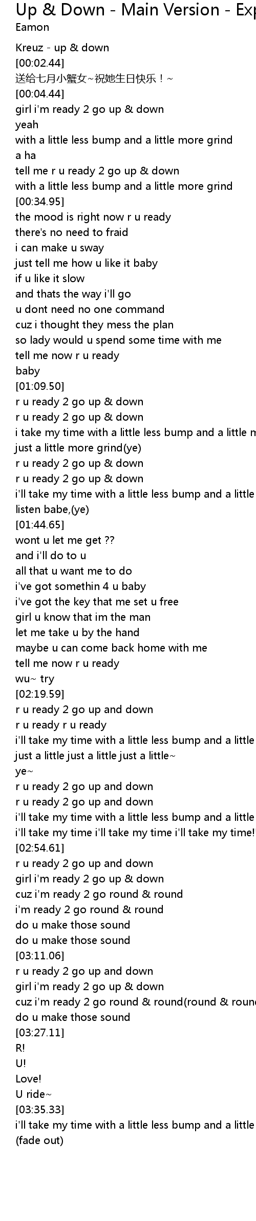 | [02:59.98] | girl i'm ready 2 go up & down |