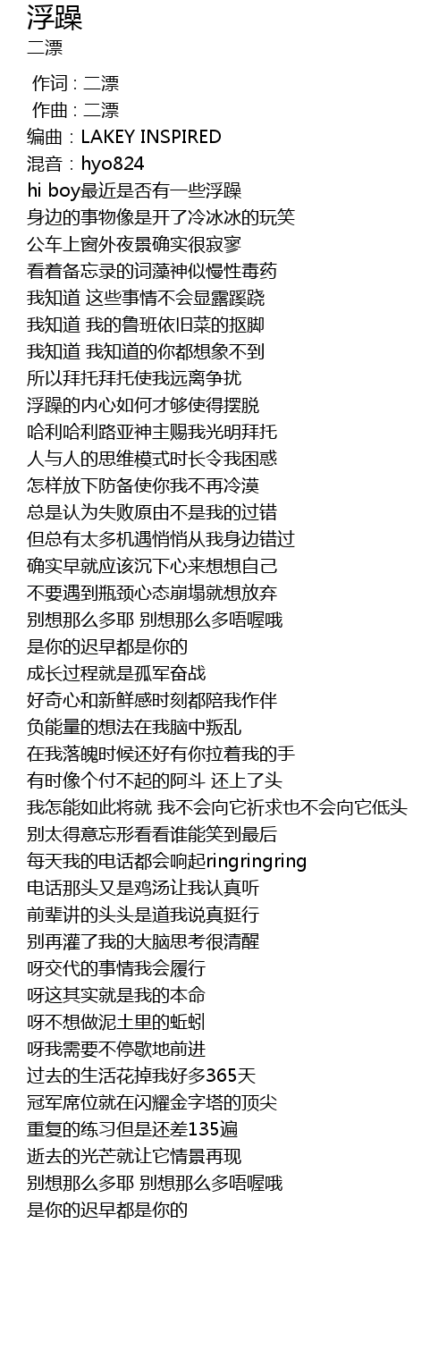 | [00:22.405] | hi boy最近是否有一些浮躁 |