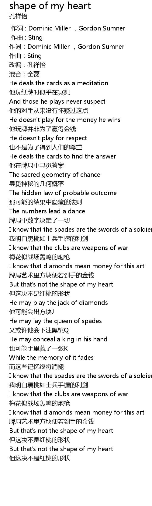 | [02:28.54] | 我明白黑桃如士兵手握的利剑 |