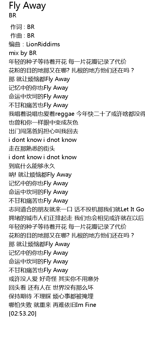 | [02:23.17] | bu gan he tong ku ye Fly Away |