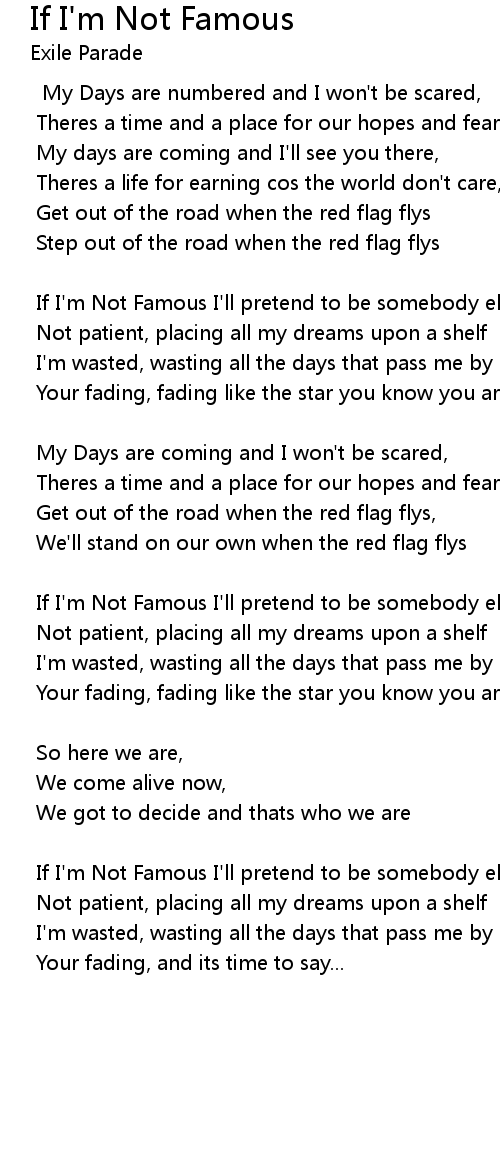 If I'm Not Famous I'll pretend to be somebody else, |
