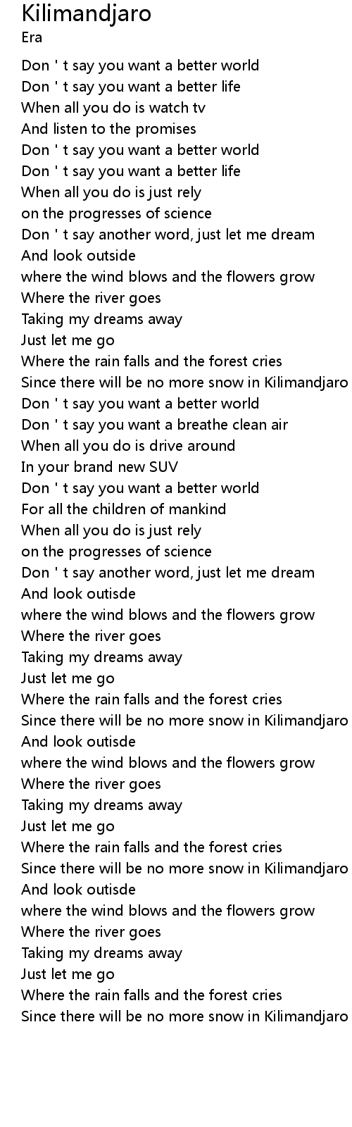 | [02:42.500] | Since there will be no more snow in Kilimandjaro |