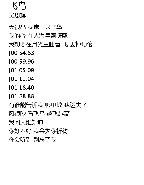 | [00:33.98] | tiān hěn gāo wǒ xiàng yì zhī fēi niǎo |
