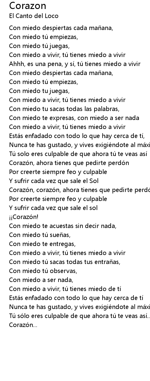 | Corazo n, corazo n, ahora tienes que pedirte perdo n | |