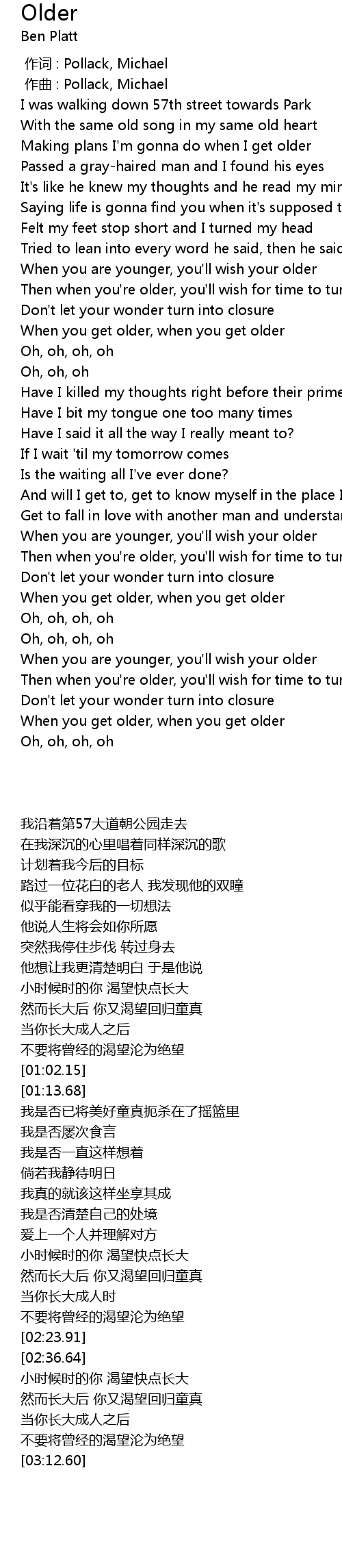 | [02:16.47] | When you get older, when you get older |