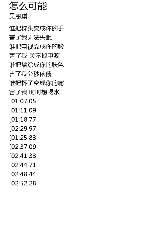 | [02:59.98][02:29.97][01:22.27] | 怎么可能被你操控我的心 |