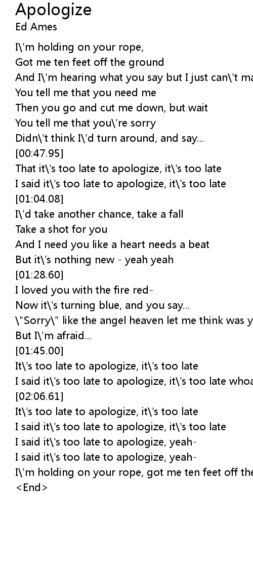 It\'s too late to apologize, it\'s too late |