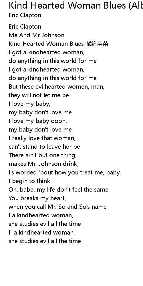| Kind Hearted Woman Blues xiàn gěi miáo miáo | |