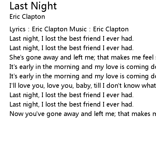 | Lyrics: Eric Clapton Music: Eric Clapton | |