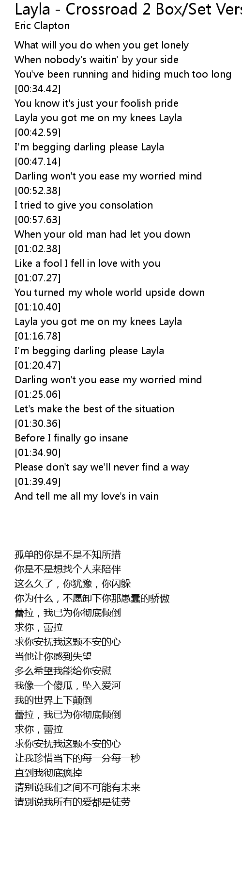 Layla you got me on my knees Layla |