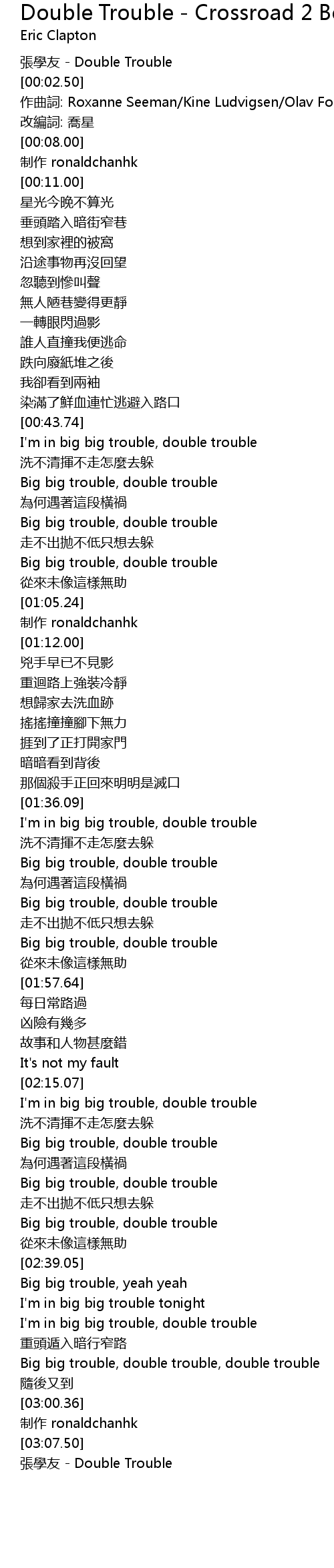 | Song | Double Trouble - Crossroad 2 Box/Set Version |