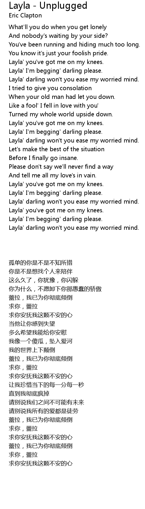 | [02:46.300] | Layla' darling won' t you ease my worried mind. |