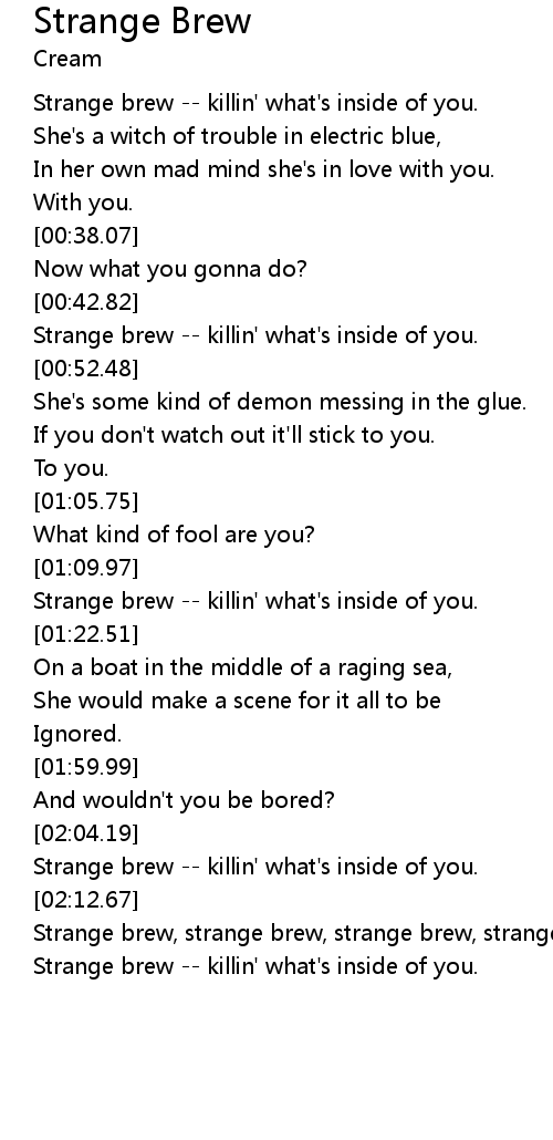 Strange brew, strange brew, strange brew, strange brew. |
