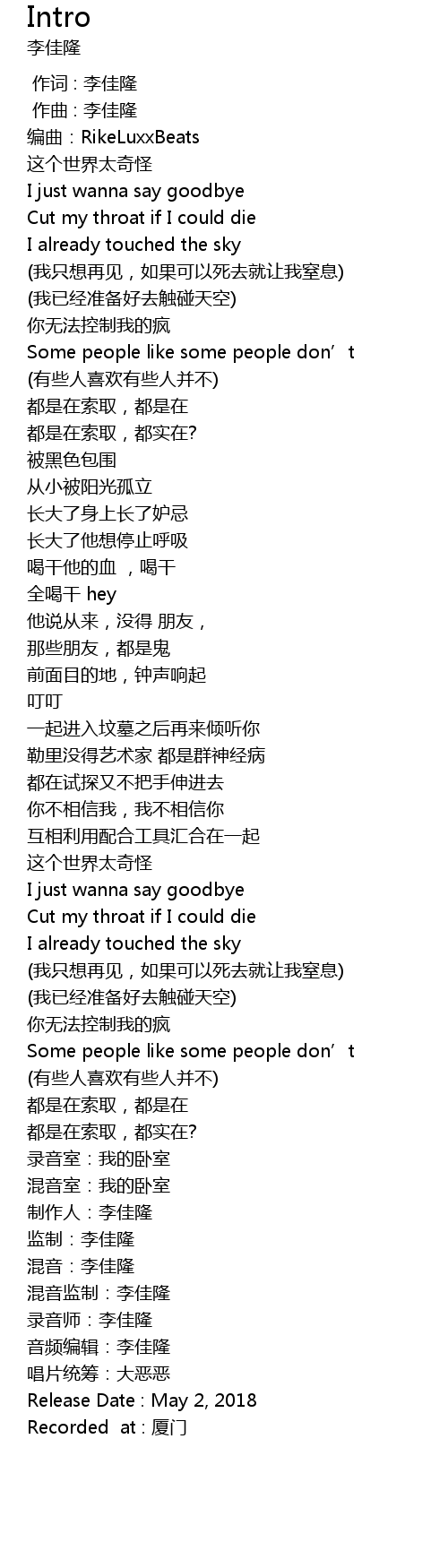 | [02:28.48] | Release Date : May 2, 2018 |