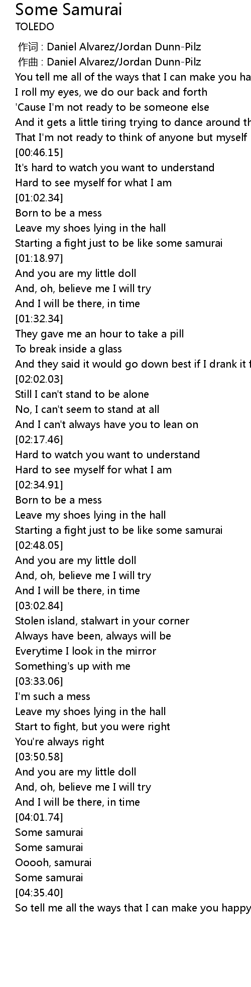 | [02:41.99] | Starting a fight just to be like some samurai |