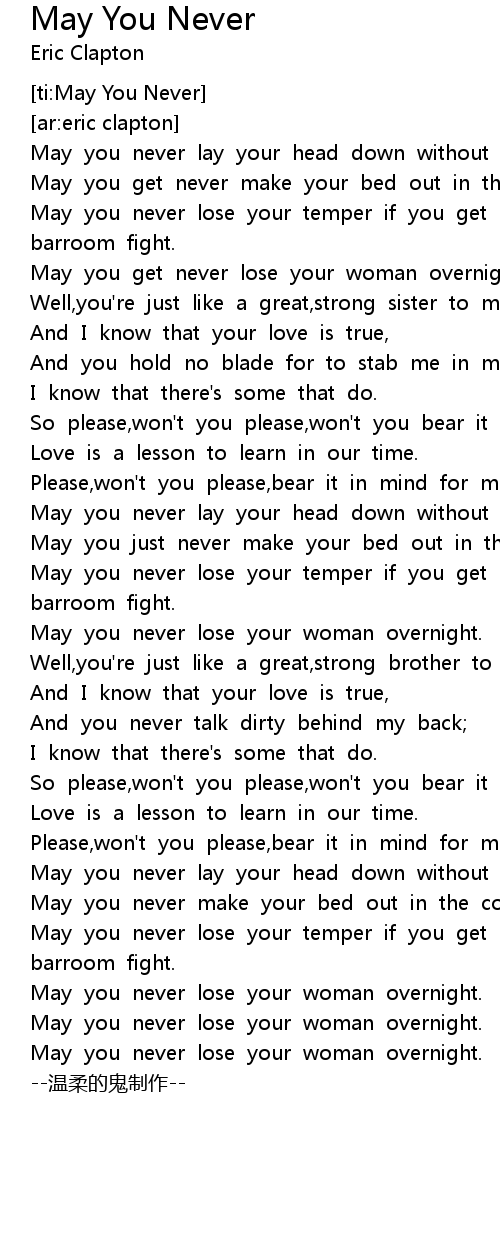 | [ti:May You Never] | |