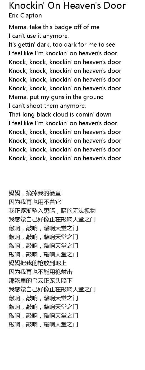 | [00:46.280] | I feel like I' m knockin' on heaven' s door. |