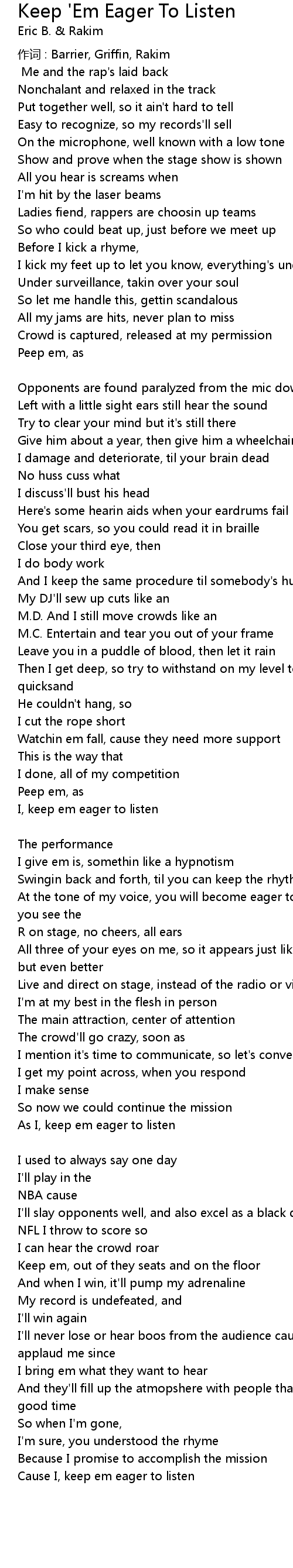 | Keep em eager to listen Rakim | |
