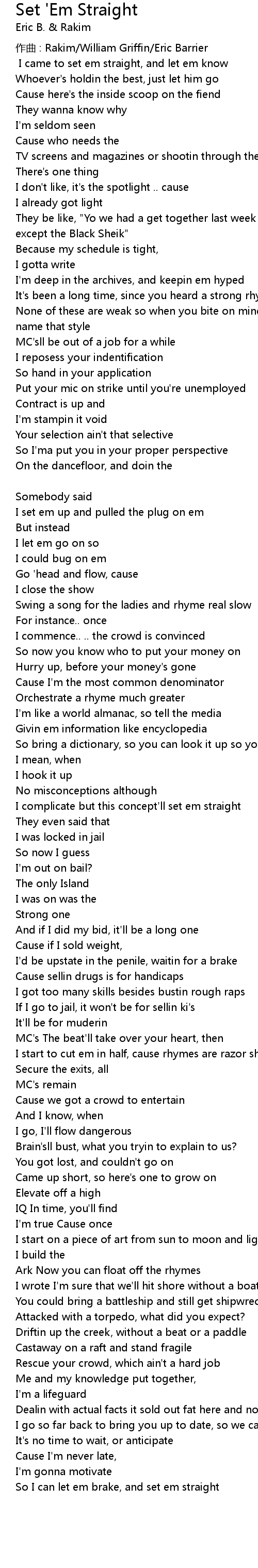 | [Rakim] I came to set em straight, and let em know | |