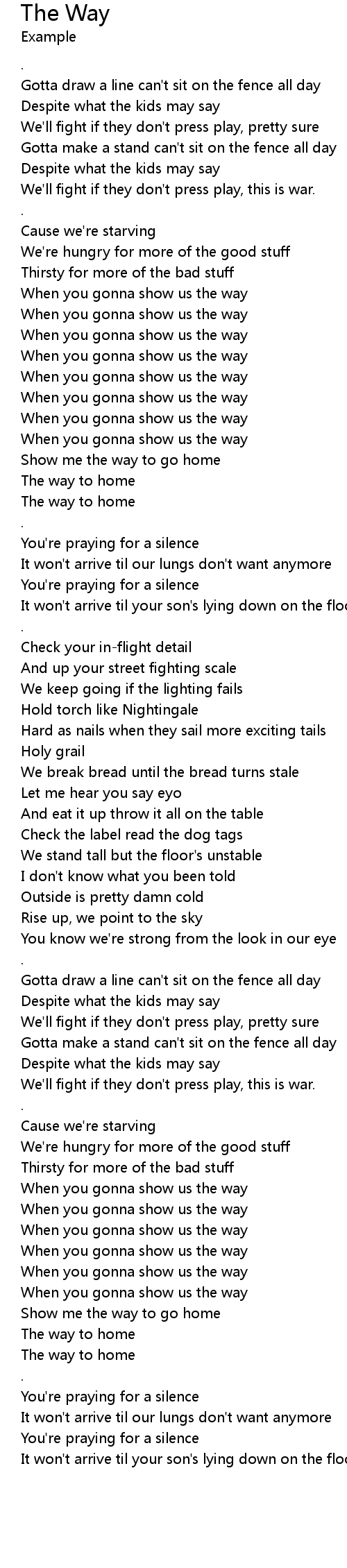 When you gonna show us the way |