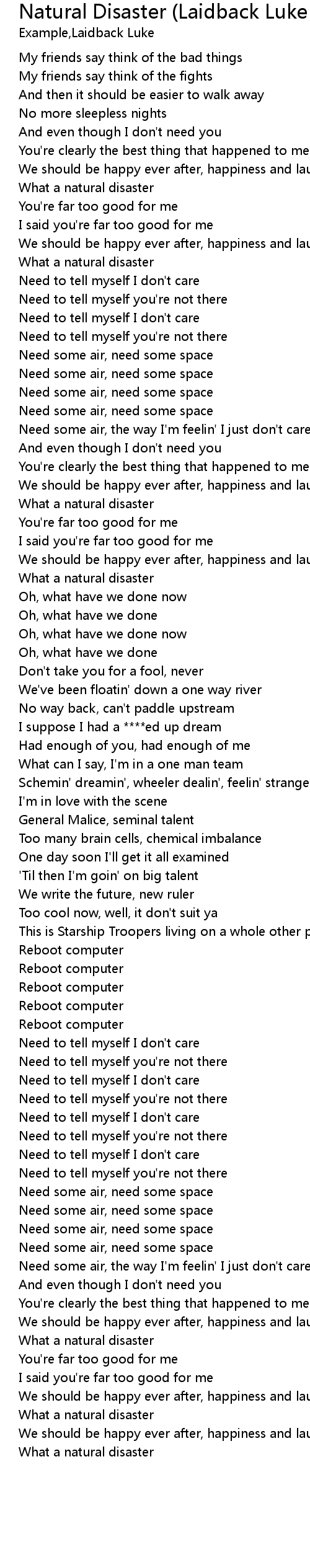 Natural Disaster (Laidback Luke vs. Example) - Album Extended Lyrics