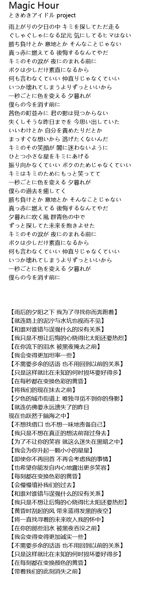 | [01:21.87] | 一秒ごとに色を変える 夕暮れが |