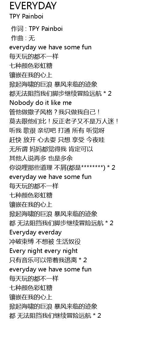 | [02:17.713] | měi tiān wán de dōu bù yí yàng |