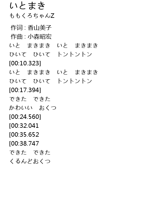 | [00:03.579] | いと まきまき いと まきまき |