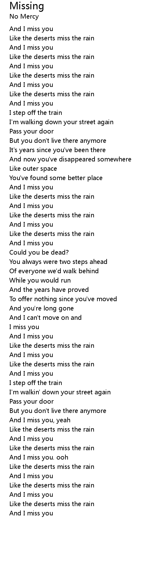 And I miss you. ooh |