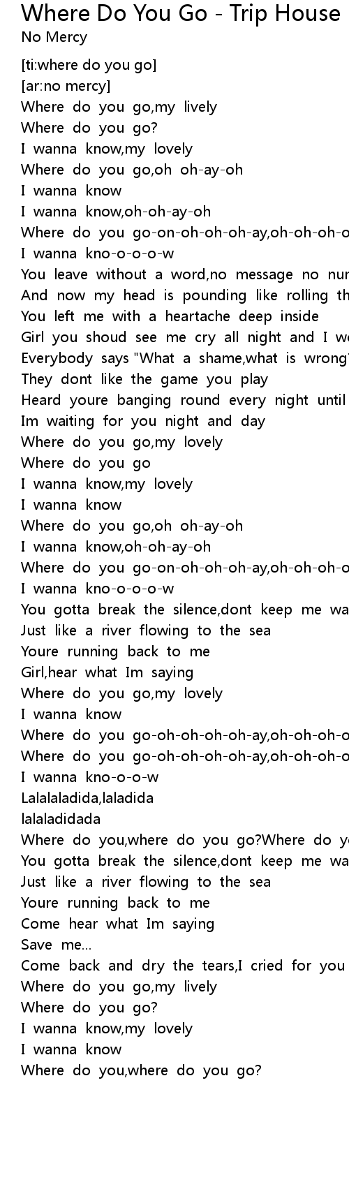 Where do you go-on-oh-oh-oh-ay,oh-oh-oh-oh-ay-oh |
