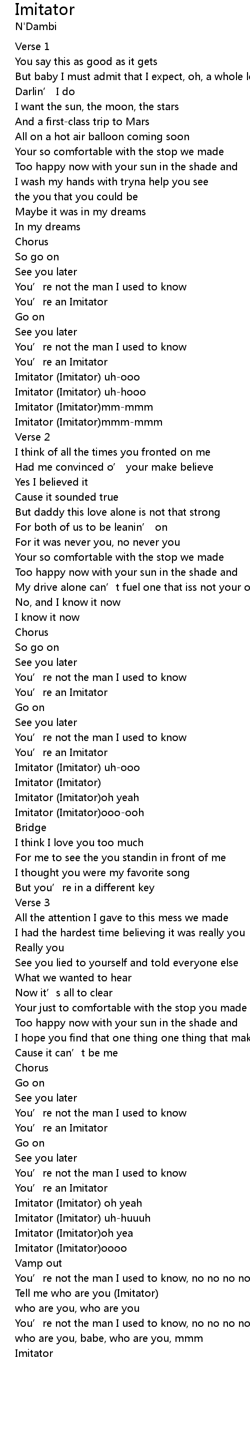 | You’re not the man I used to know, no no no no (Imitator) | |