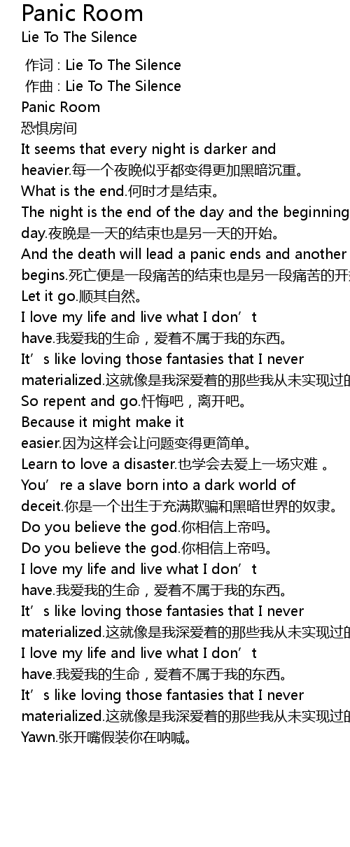 | [00:01.000] | 作曲 : Lie To The Silence |