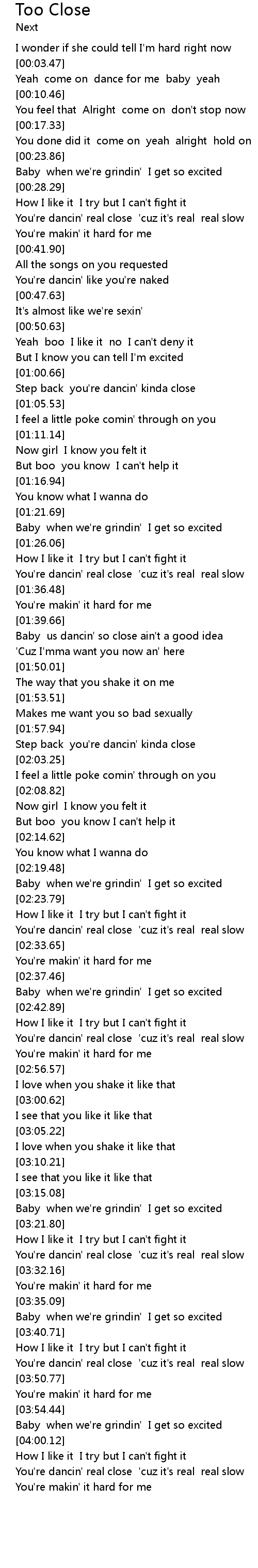 Step back you're dancin' kinda close |
