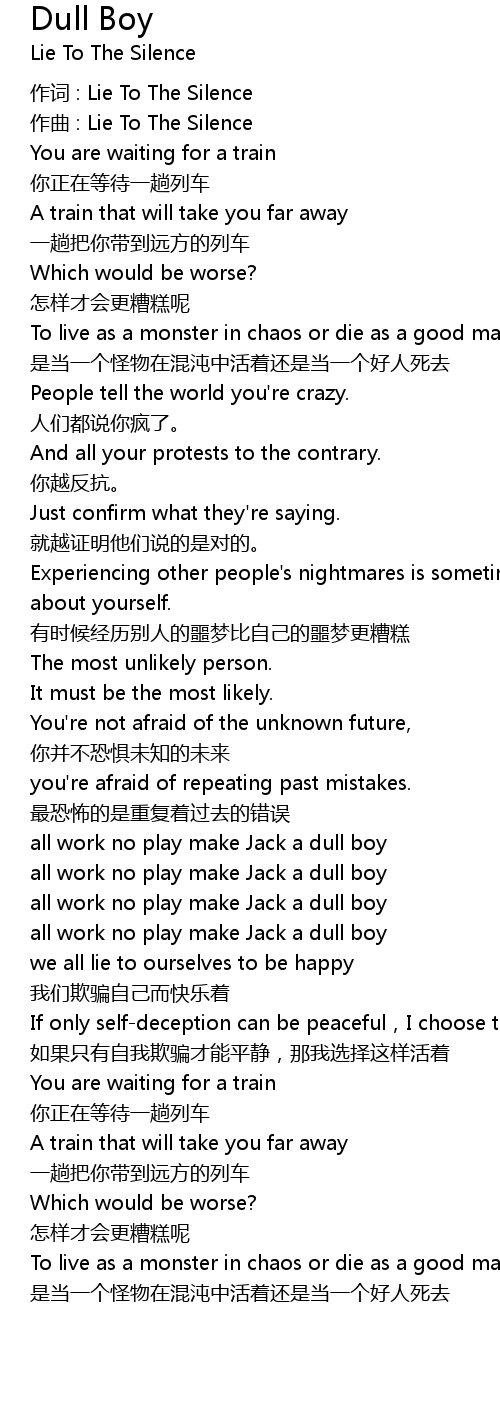 | 作词 : Lie To The Silence | |