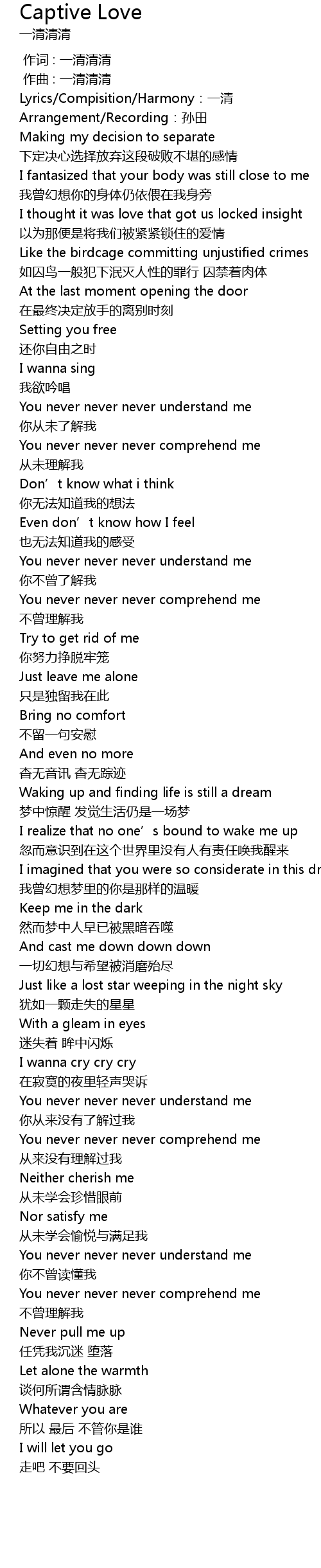 | [00:10.457] | Lyrics Compisition Harmony: yi qing |