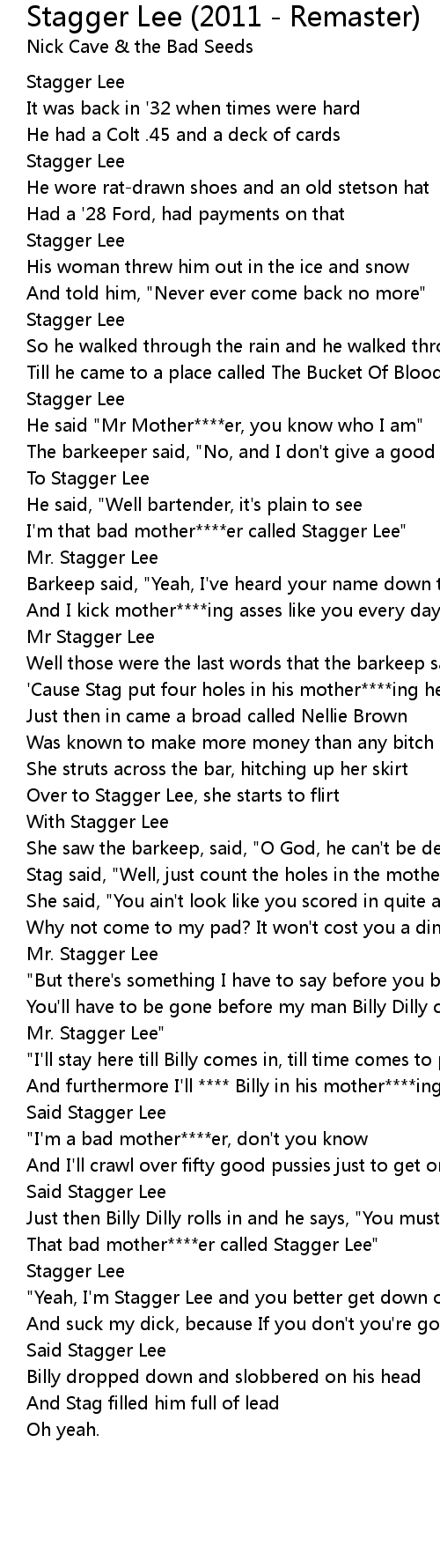 "Yeah, I'm Stagger Lee and you better get down on your knees |