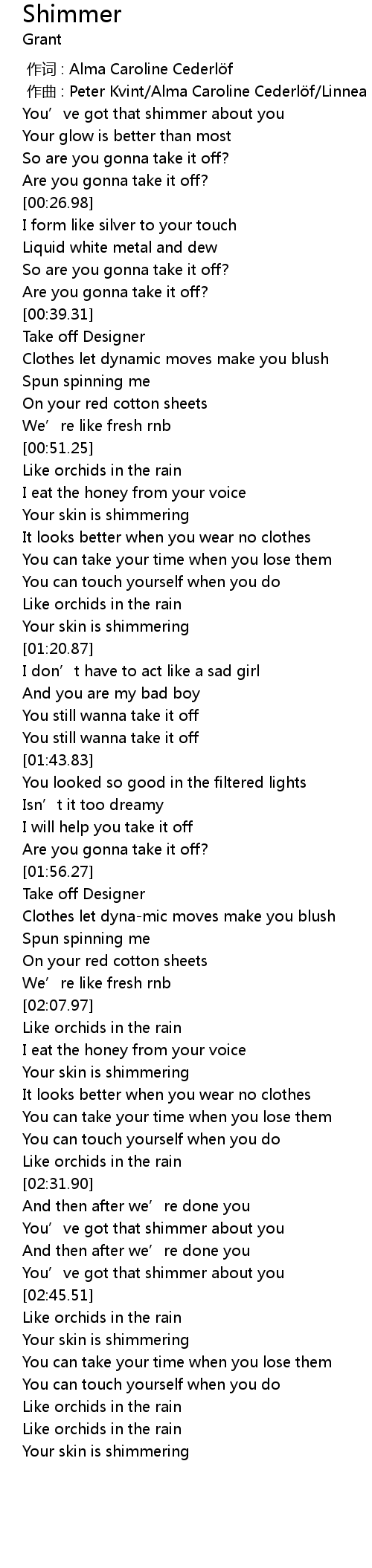 | [00:01.000] | 作曲 : Peter Kvint/Alma Caroline Cederlöf/Linnea Södahl |