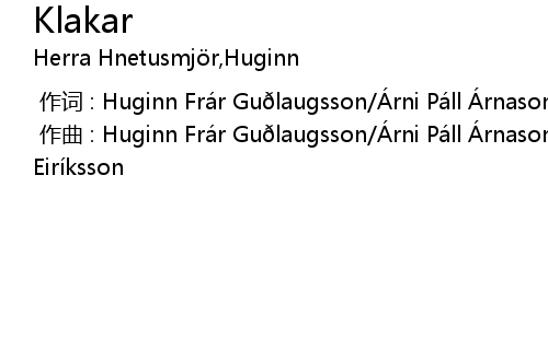 | [00:00.000] | 作曲 : Huginn Frár Guðlaugsson/Árni Páll Árnason/Þormóður Eiríksson |