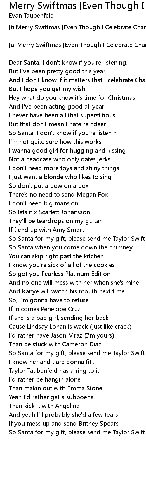 | [ti:Merry Swiftmas [Even Though I Celebrate Chanukah]] | |