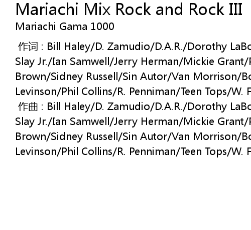 | [00:00.000] | zuo qu : Bill Haley D. Zamudio D. A. R. Dorothy LaBostrie Franck C. Slay Jr. Ian Samwell Jerry Herman Mickie Grant Palito Ortega Penniman Roy Brown Sidney Russell Sin Autor Van Morrison Bob Crewe Chico Novarro M. Levinson Phil Collins R. Penniman Teen Tops W. Farrell Mu oz |
