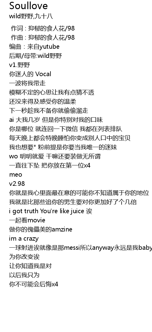 | [00:02.793] | 后期/母带:wild野野 |