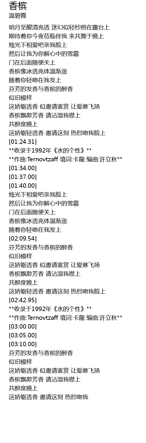 | [00:52.82] | 芬芳的发香与香槟的醉香 |