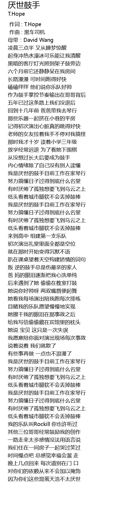 | [02:20.096] | 我是厌世的鼓手目前工作在家琴行 |