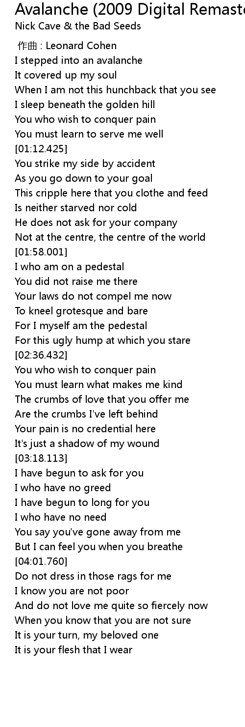 | [00:00.000] | 作曲 : Leonard Cohen |