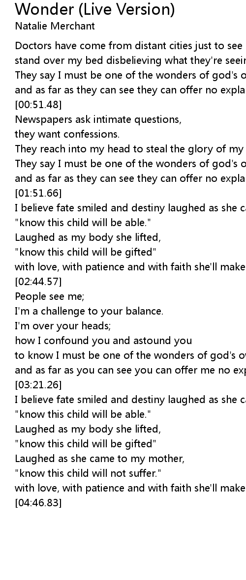 to know I must be one of the wonders of god's own creation, |