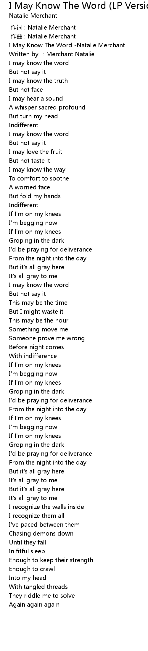 | [00:00.222] | I May Know The Word Natalie Merchant |